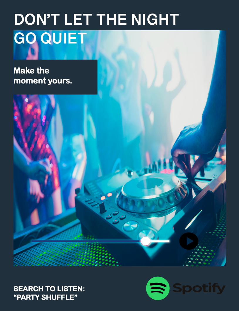 In my Advertising Portfolio class at Syracuse University, we were tasked to choose 3 brands to create advertising campaigns for. The first brand I chose to work on this semester was Spotify. Within this campaign, I wanted to resemble the way music and Spotify can be embedded in our everyday lives. I used Adobe InDesign to design this campaign, while my photos came from Adobe Stock.